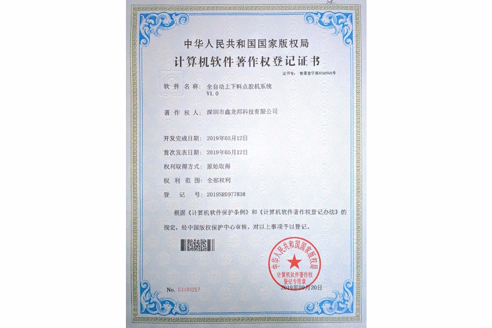 計(jì)算機(jī)軟件著作權(quán)登記證書